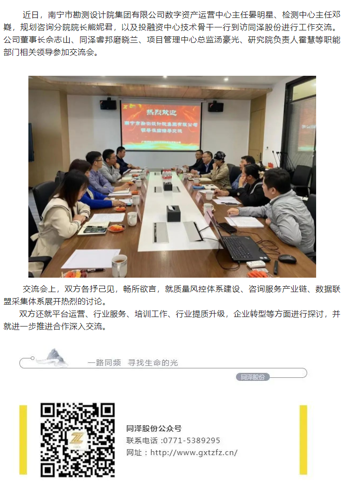 合作交流 | 南寧市勘測(cè)設(shè)計(jì)院集團(tuán)有限公司到訪同澤股份交流